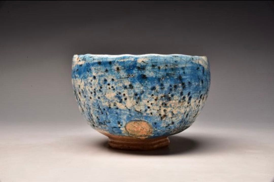 幕末の名工 春岱の片口茶碗です。最大口径 14cm弱高さ 6cm弱。メルカ・リー 神楽 面。一條家の所蔵品です。ma609⑤『黄瀬戸 十字紋 茶碗』 /骨董品 古美術 アンティーク 古玩レビュー